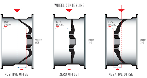 Positive Offset – The mounting surface is positioned toward the outside of the wheel, causing the wheel to sit further inside the wheel well.
